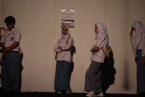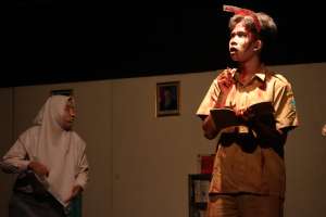 “Ceritanya ini tentang seorang murid yang dibully sampai jadi hantu bergentayangan,” jelas Wahyu saat ditemui usai pementasan.